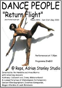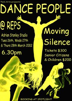 include: MOVING SILENCE March 2002 at Reps Theatre. Including 'Faure's Requiem' and 'Mai John' and guest appearance by Jimi Makurumbandi (best dancer of the year NAMA award)