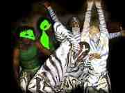 balance, Solo Programme Moving Words. 2000 'COUNCIL OF ALL BEINGS' (see pictures) Set to a lecture illustrating the time line of the history of the creation of the universe, from the BIG BANG to the harnessing of nuclear power. Created for students from 'Southern Lights' a school for children for whom the traditional Zimbabwean education does not cater (i.e. students with learning problems and aspirations.) The choreography worked through the development of the spiral, cf. European Modern Dance Development from 1930's. Strong use of props to focus the students, including fireworks, streamers, bamboo poles, leaves and jungle gyms.